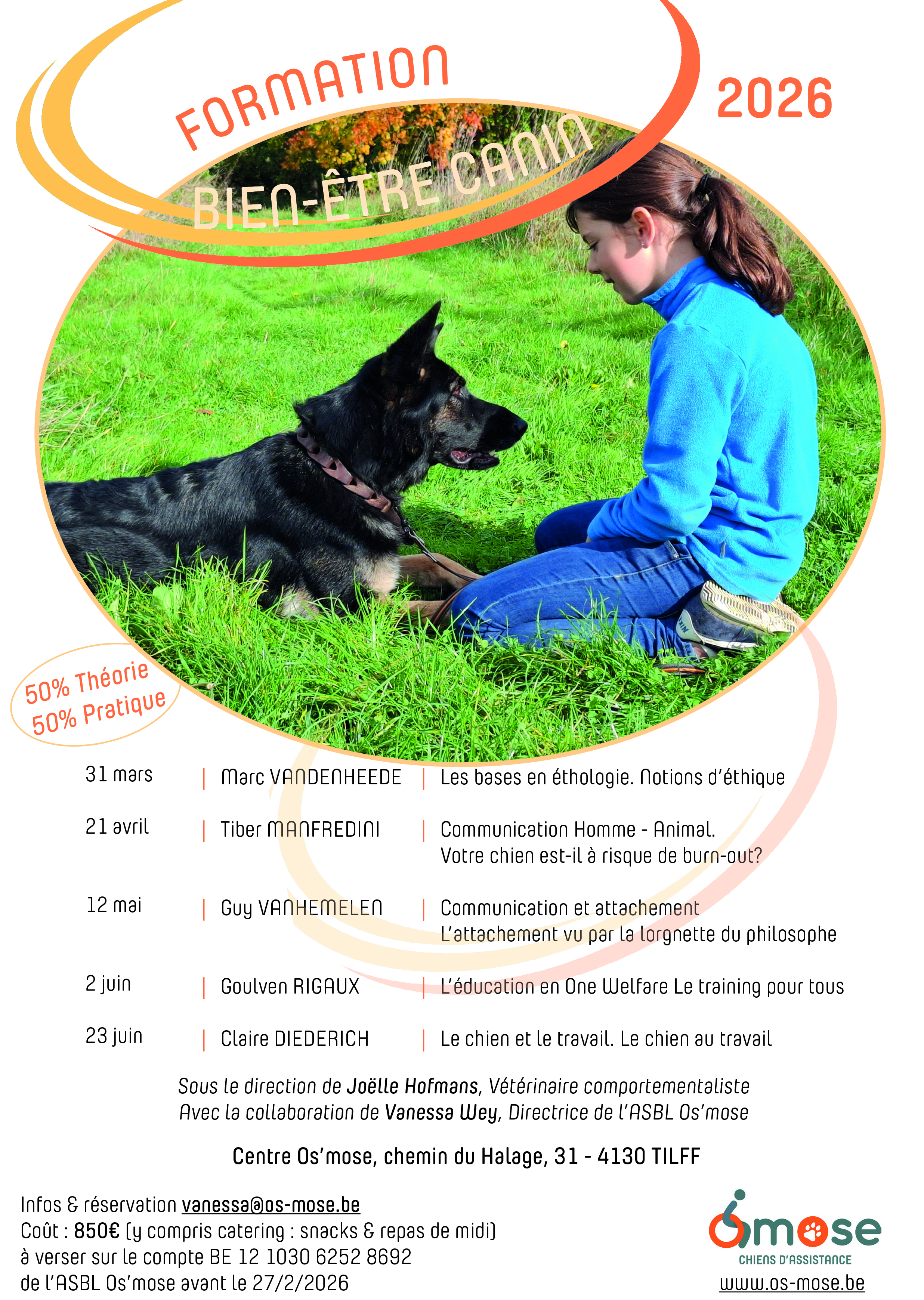 Après deux premières éditions couronnées de succès et saluées à l’unanimité, Os’mose ouvre les inscriptions pour la 3ᵉ édition de la formation One Welfare – Bien-être canin, prévue en 2026